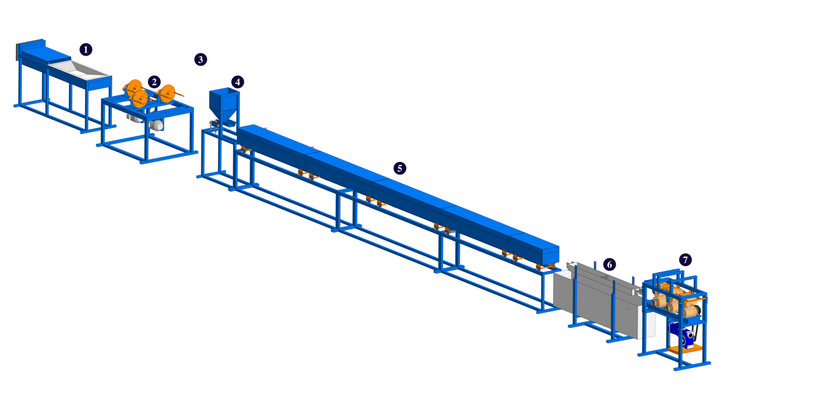 Линия производства композитной арматуры (GFRP) базовой комплектации с 6-вальным тянущим устройством